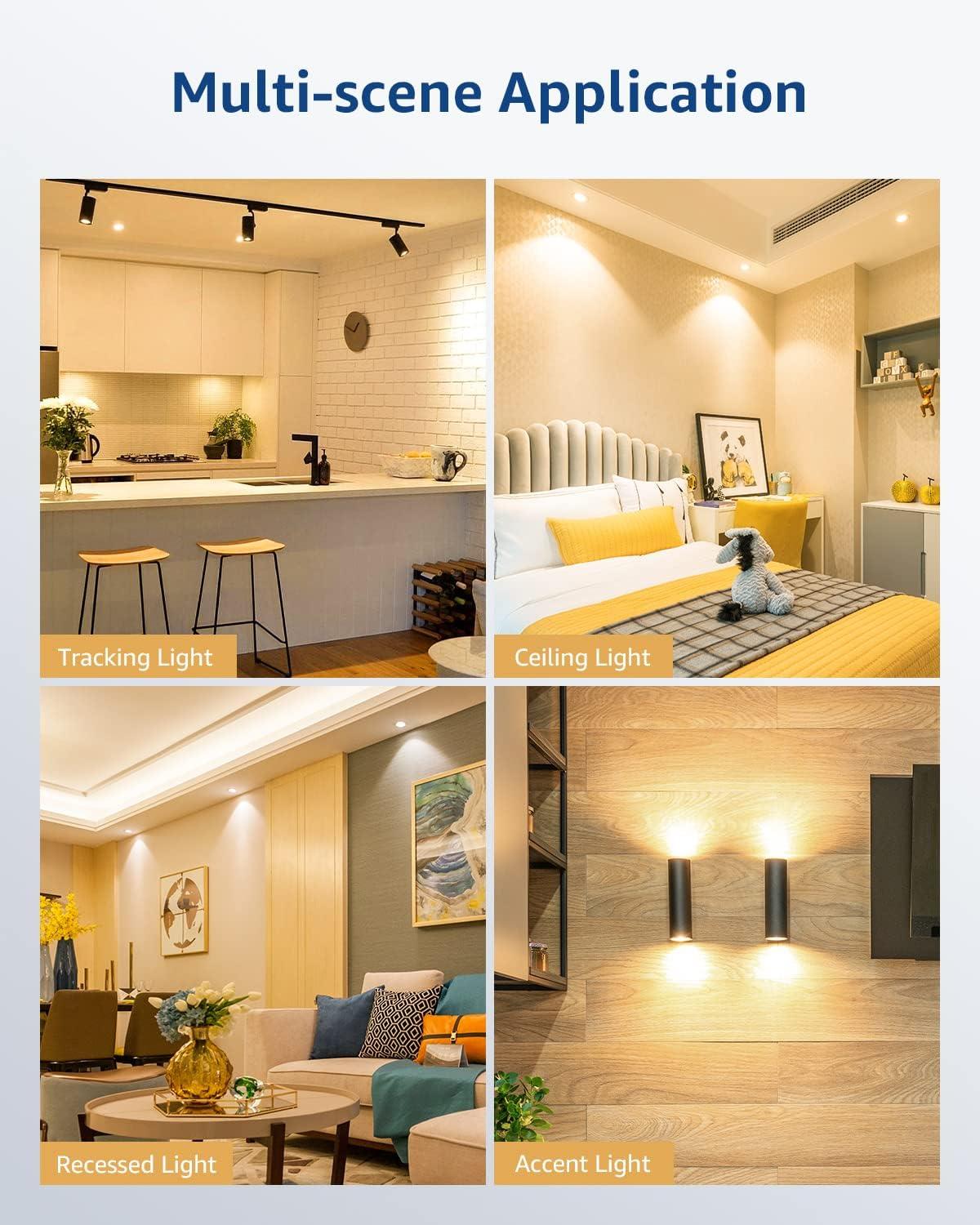 【5000K Daylight & 100°Beam Angle】 350LM output for bright, comfortable white light; perfect for track, recessed, and accent lighting. Note: These LED bulbs are NOT dimmable; using them with dimmer switches may cause flickers.