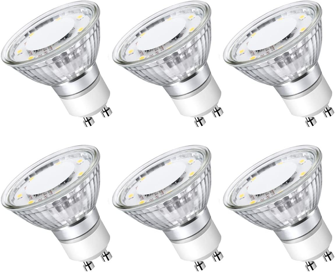 LE GU10 LED Light Bulbs Non-Dimmable, 5000K Daylight White GU10 Bulb Replacement for Recessed Track Lighting, 4W LED Bulbs with 100°Flood Beam for Kitchen, Range Hood, Living Room, Bedroom, 6 Pack(Warm White)
