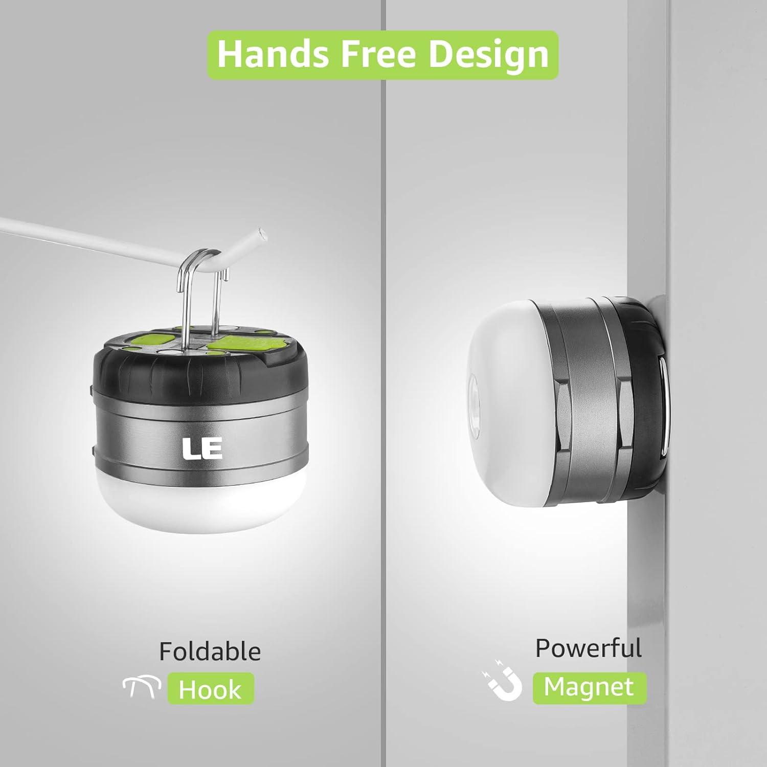LE LED Camping Lantern Rechargeable, 310LM, 5 Light Modes, Power Bank, Waterproof, Mini Flashlight with Magnetic Base for Hurricane Emergency, Outdoor, Hiking, Home and Car