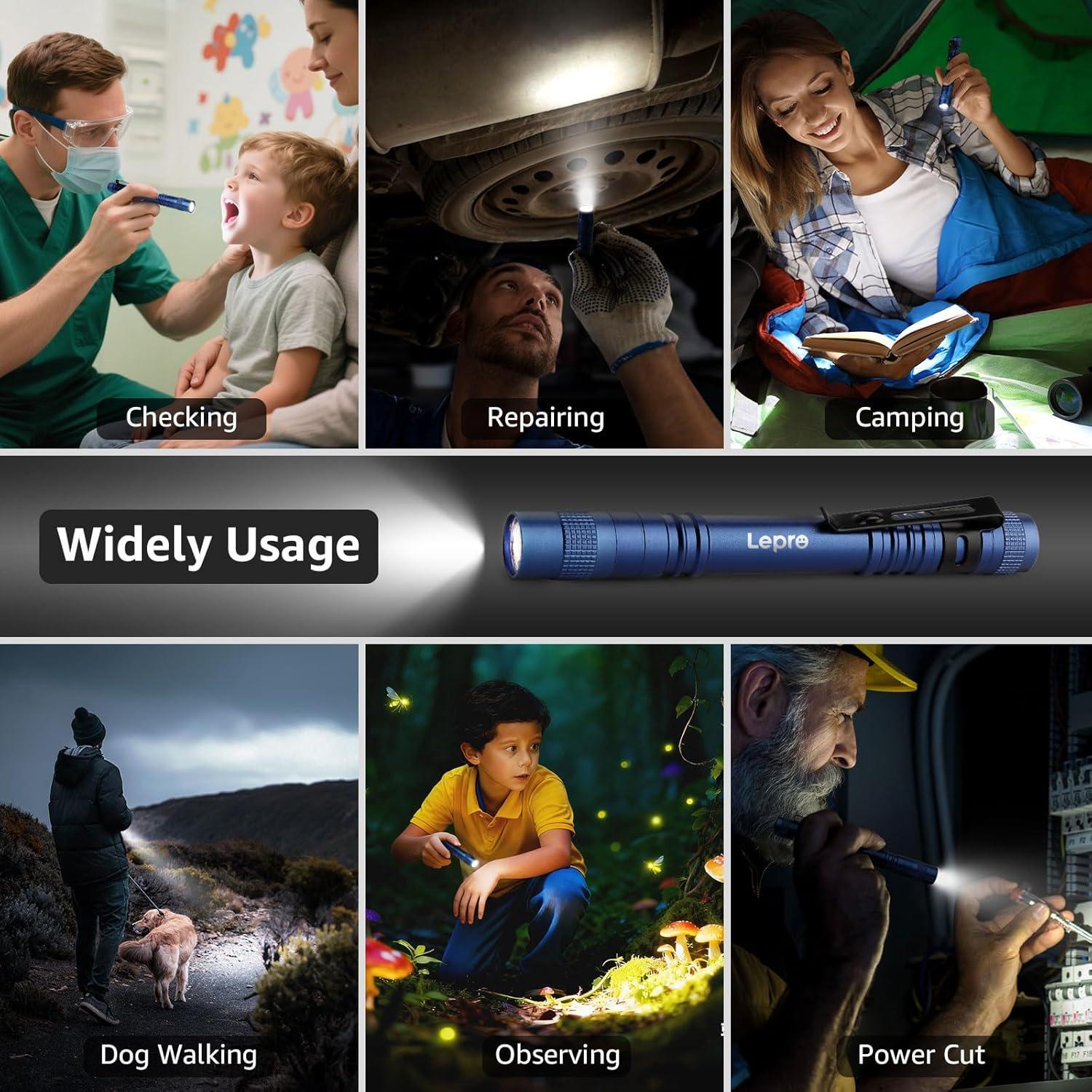 Wide Applications: This compact flashlight is widely used in many circumstances. Perfect for working, repairing, camping, emergency survival, mechanic, nurses, doctors and outdoor sports.