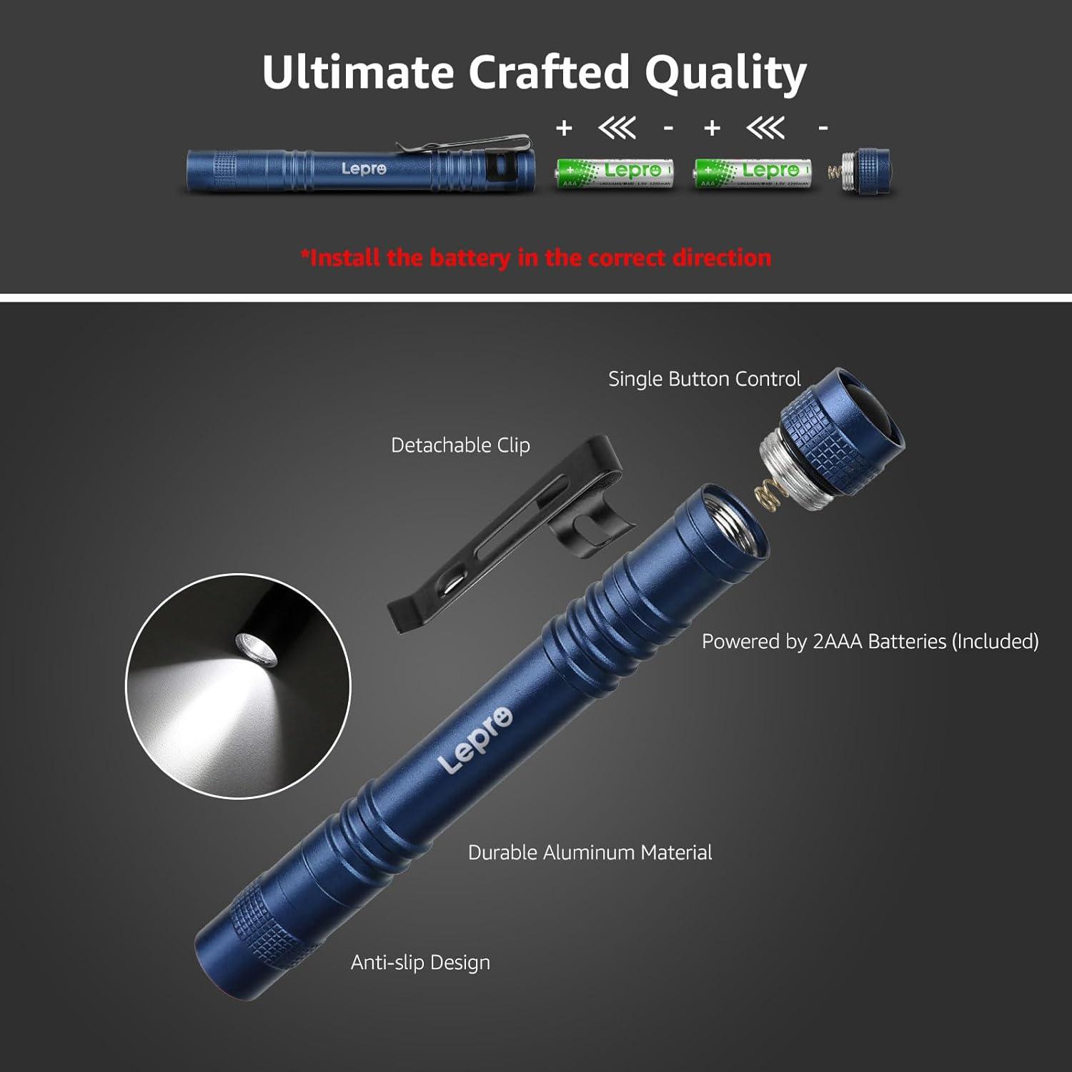 3 Lighting Modes: This 2 AAA battery (not included) powered pen flashlight comes with high brightness, low brightness and flash mode for different purposes.