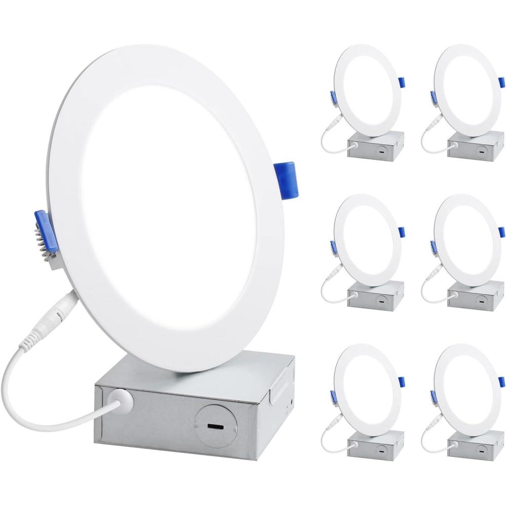 Lepro 12 Pack 6 Inch Canless LED Recessed Light,Dimmable Retrofit Ultra-Thin Ceiling Light with Junction Box,5000 Kelvin Daylight Wafer Lights 12 watt 1050 Lumen, ETL,FCC & Energy Star Certified(6)