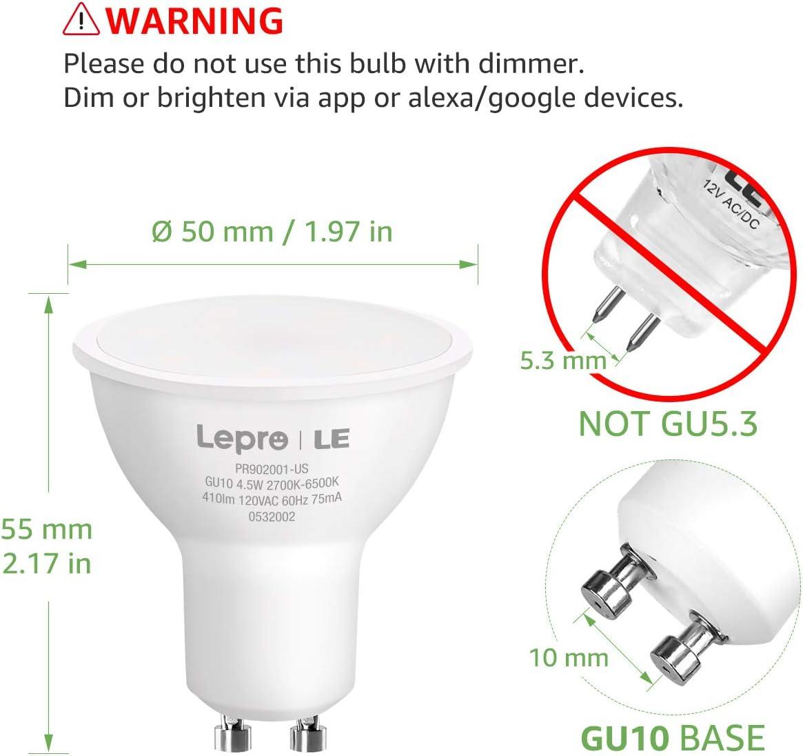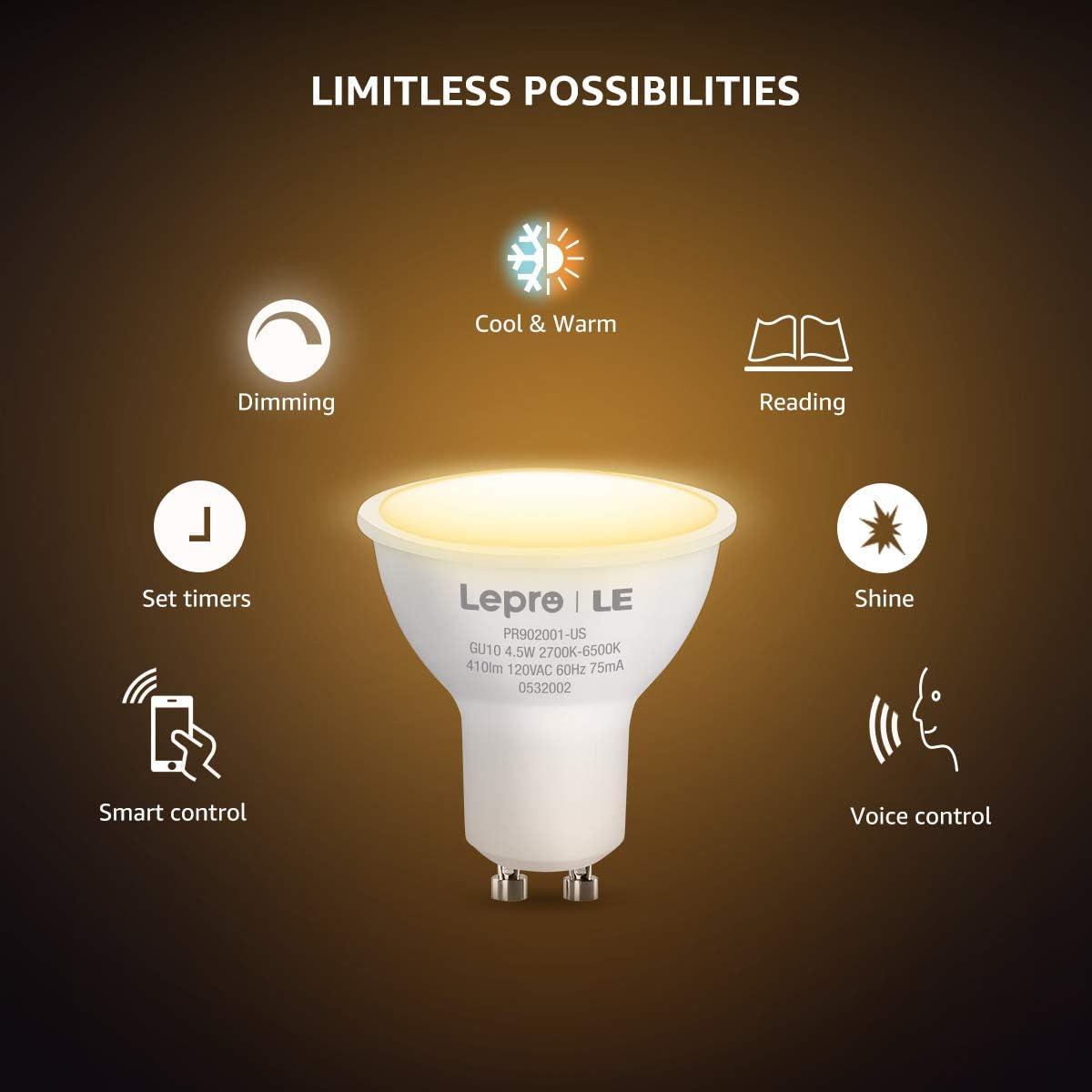 Lepro Alexa GU10 LED Light Bulbs – 50W Halogen Equivalent Smart GU10 Bulb Works with Alexa & Google Assistant,Voice and App Control,2700-6500K Tunable Track Light Bulb, No Hub Required, 2.4G WiFi Only
