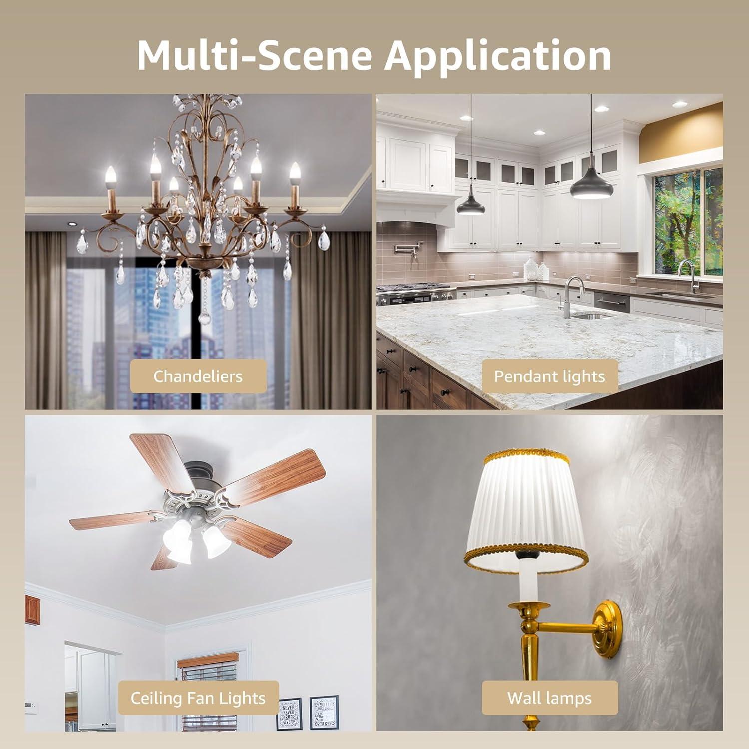CRI 80+ and flicker-free: Experience vibrant and accurate colors with a high color rendering index of 80+. These LED candelabra bulbs are also flicker-free, providing good protection for your eyes and ensuring a comfortable lighting environment.
