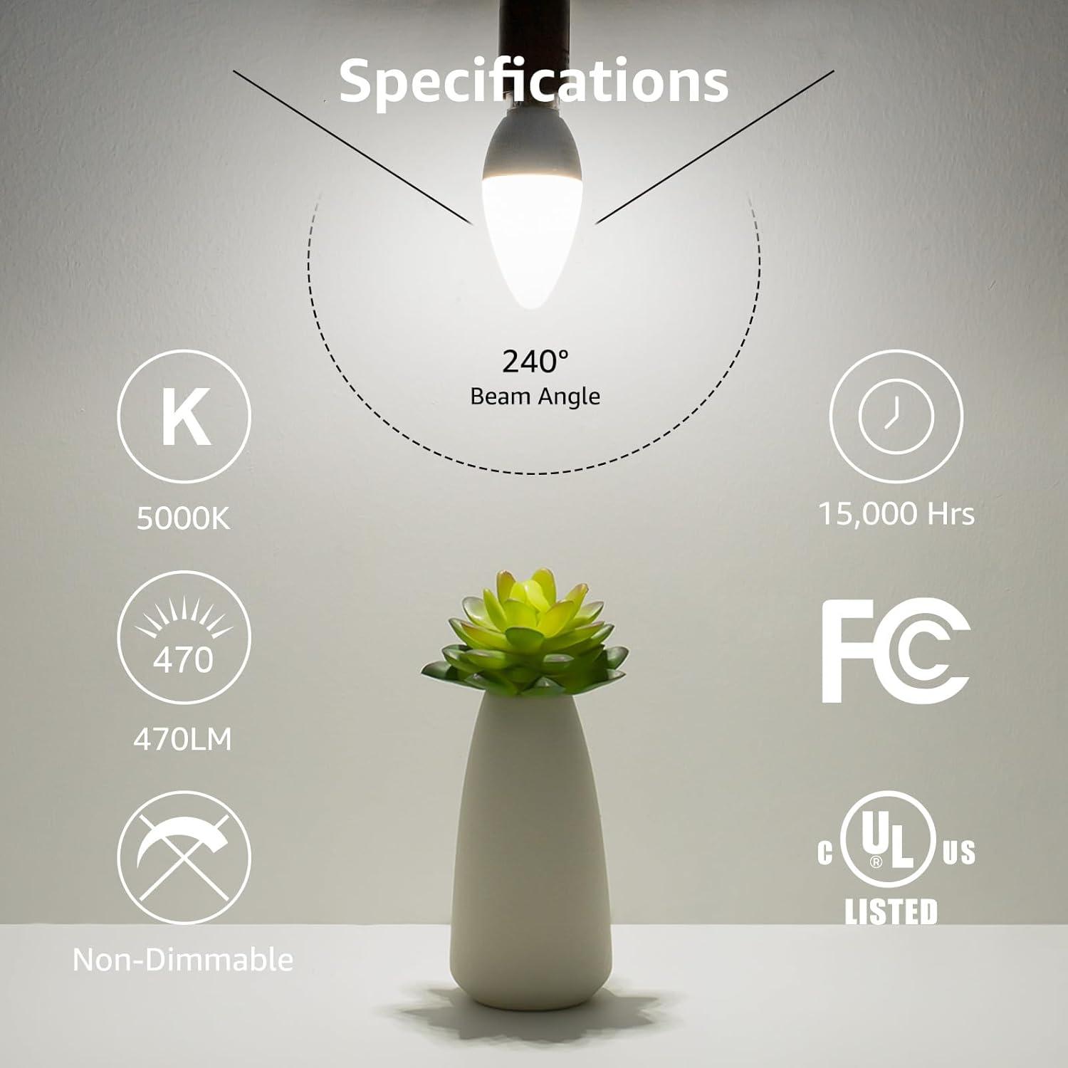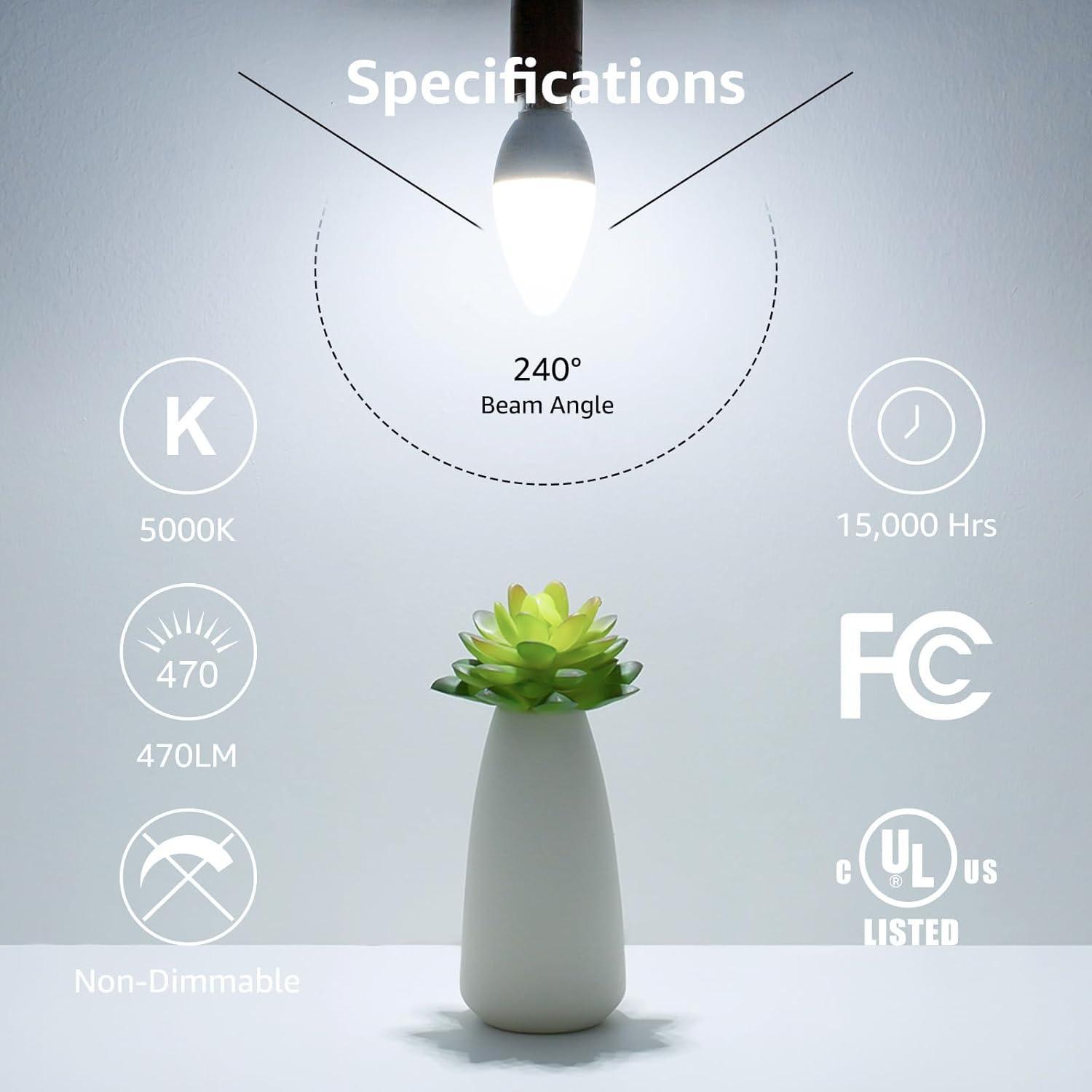 Lepro E12 LED Candelabra Light Bulbs, 5.5 watt, 40 watt Equivalent C37 B11 Ceiling Fan Bulb Chandelier Bulbs, 2700 Kelvin Warm White Type B Small Base Candle Lights, Frosted Plastic Shell, 6-Pack(Daylight White)