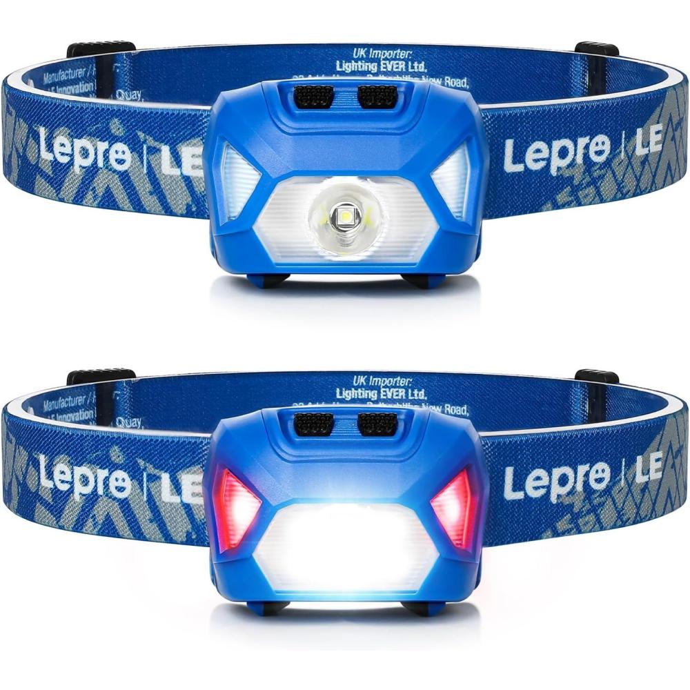 Lepro HeadLamp, 2 Pack Super Bright LED Head lamp with 6 Lighting Modes, Waterproof, Battery Powered LED Lightweight Headlight for Cycling Running Camping for Kids Adults(Blue-2 Pack)