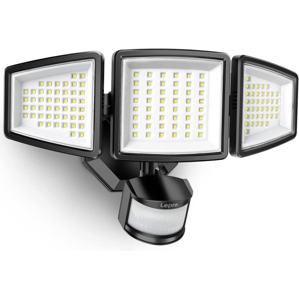 Lepro LED Security Lights, Outdoor Motion Sensor Light, Flood Lights with 3 Adjustable Heads, 270° Wide Lighting Angle, 27W 3200LM Super Bright, IP65 Waterproof for Yard Porch Garage, White(Black)